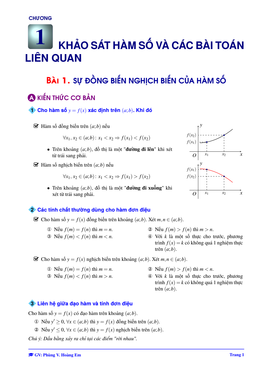 Bài giảng sự đồng biến và nghịch biến của hàm số – Phùng Hoàng Em
