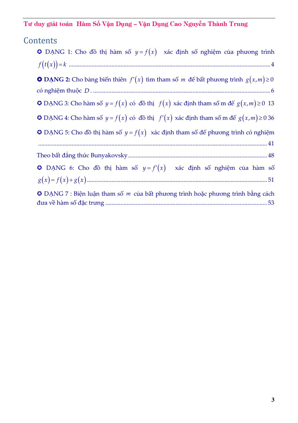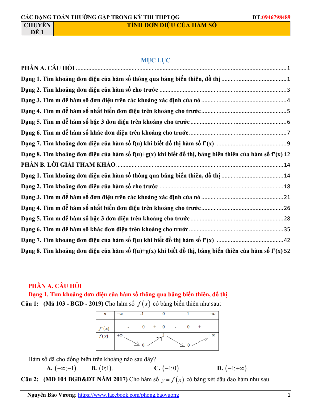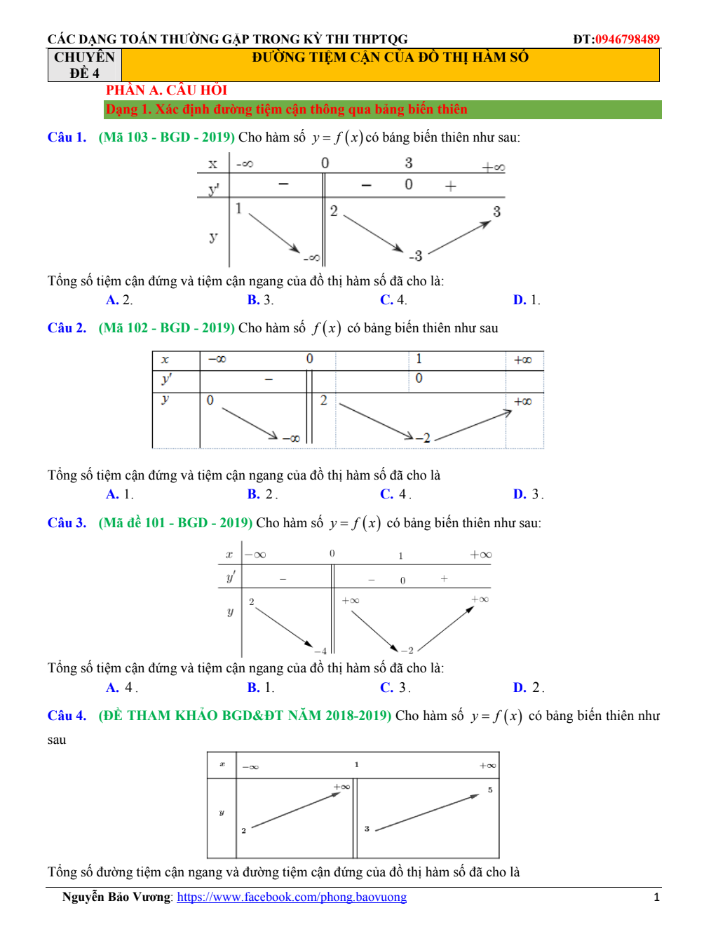 Chuyên đề bảng biến thiên và đồ thị hàm số – Đặng Việt Đông
