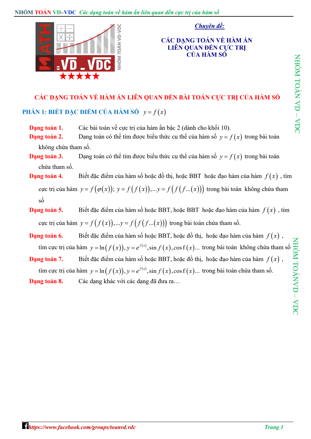 Các dạng toán cực trị của hàm số thường gặp trong kỳ thi THPTQG