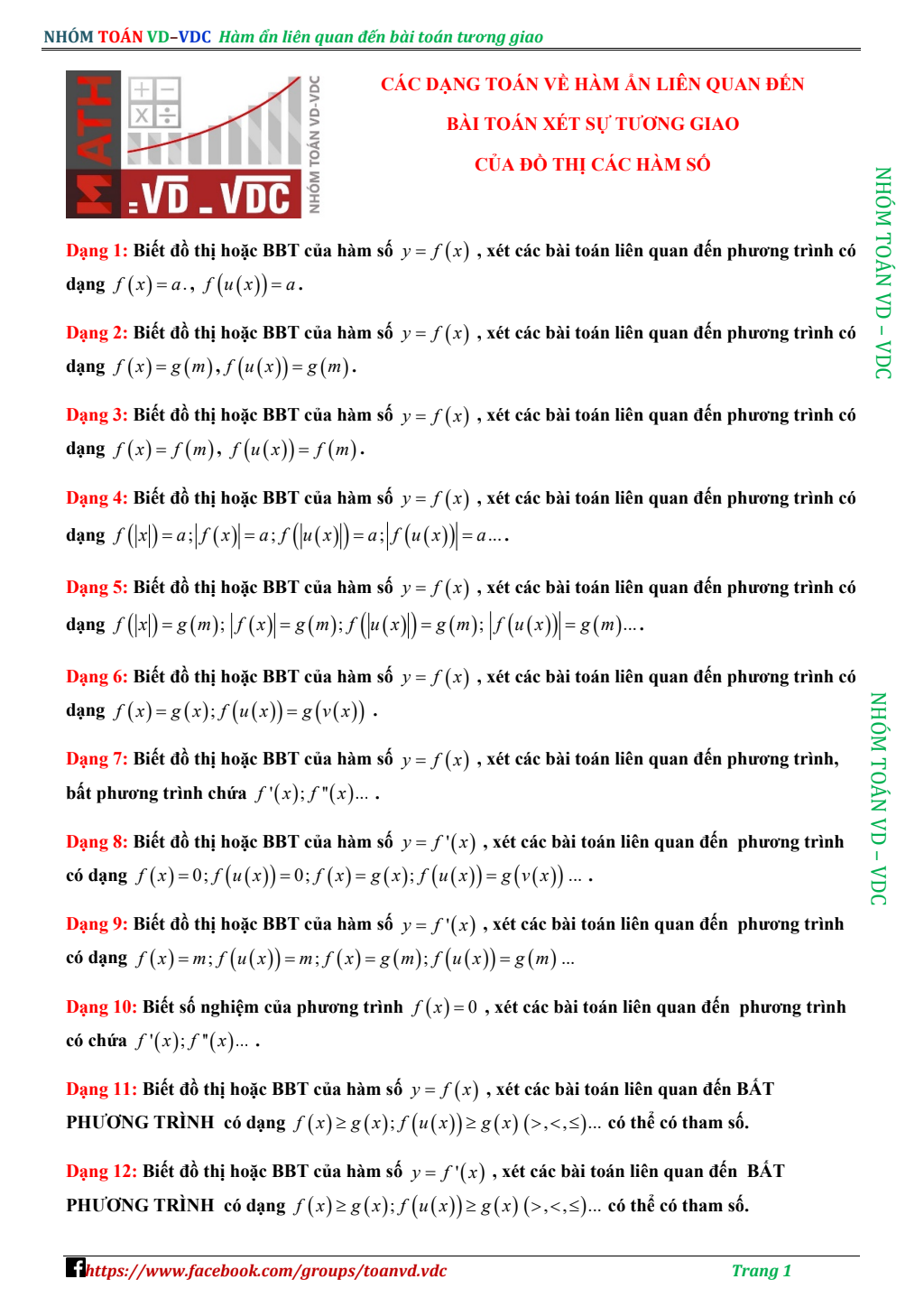 Các dạng toán về hàm ẩn liên quan đến sự tương giao của đồ thị hàm số
