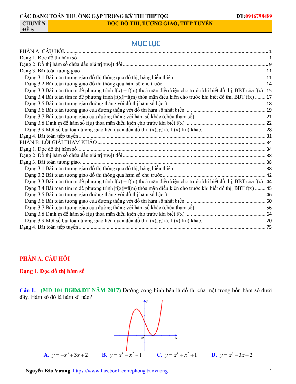 Các dạng toán đọc đồ thị – tương giao – tiếp tuyến thường gặp trong kỳ thi THPTQG
