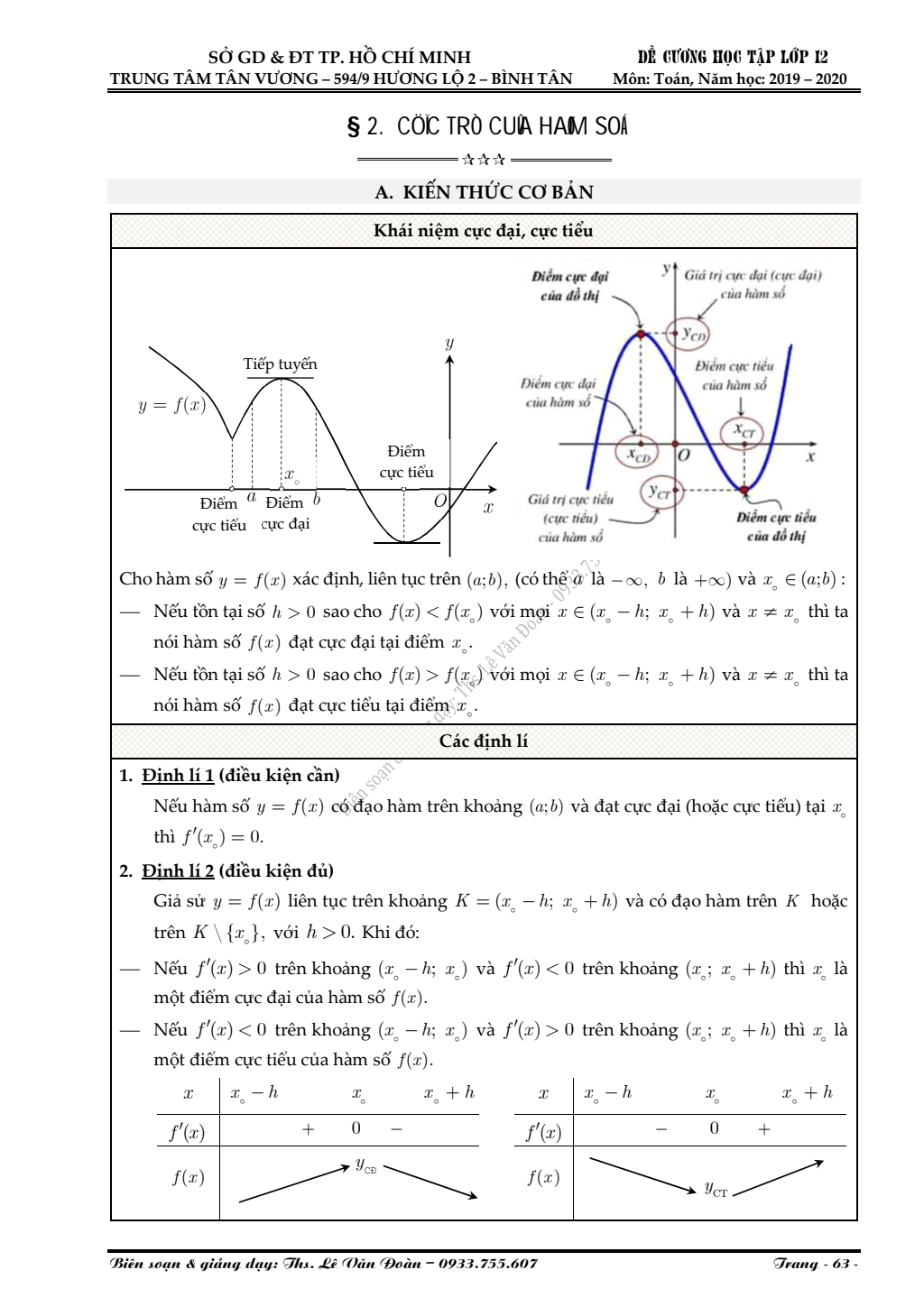 Cực trị của hàm số – Lê Văn Đoàn