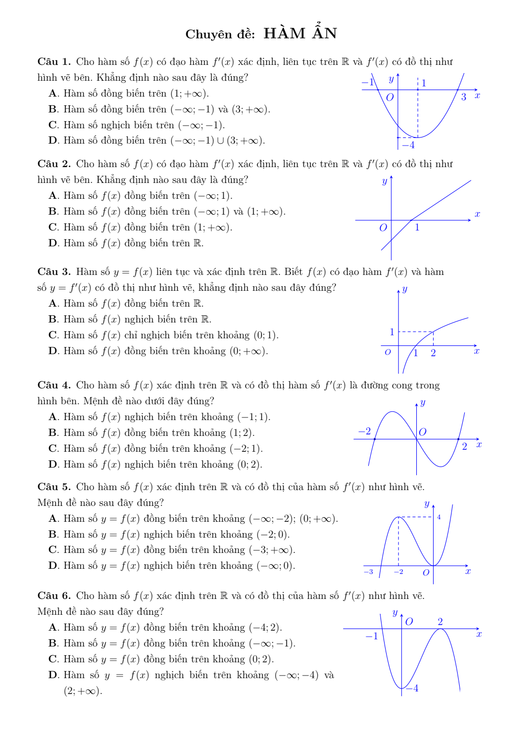 Các dạng toán về hàm ẩn liên quan đến tính đơn điệu của hàm số