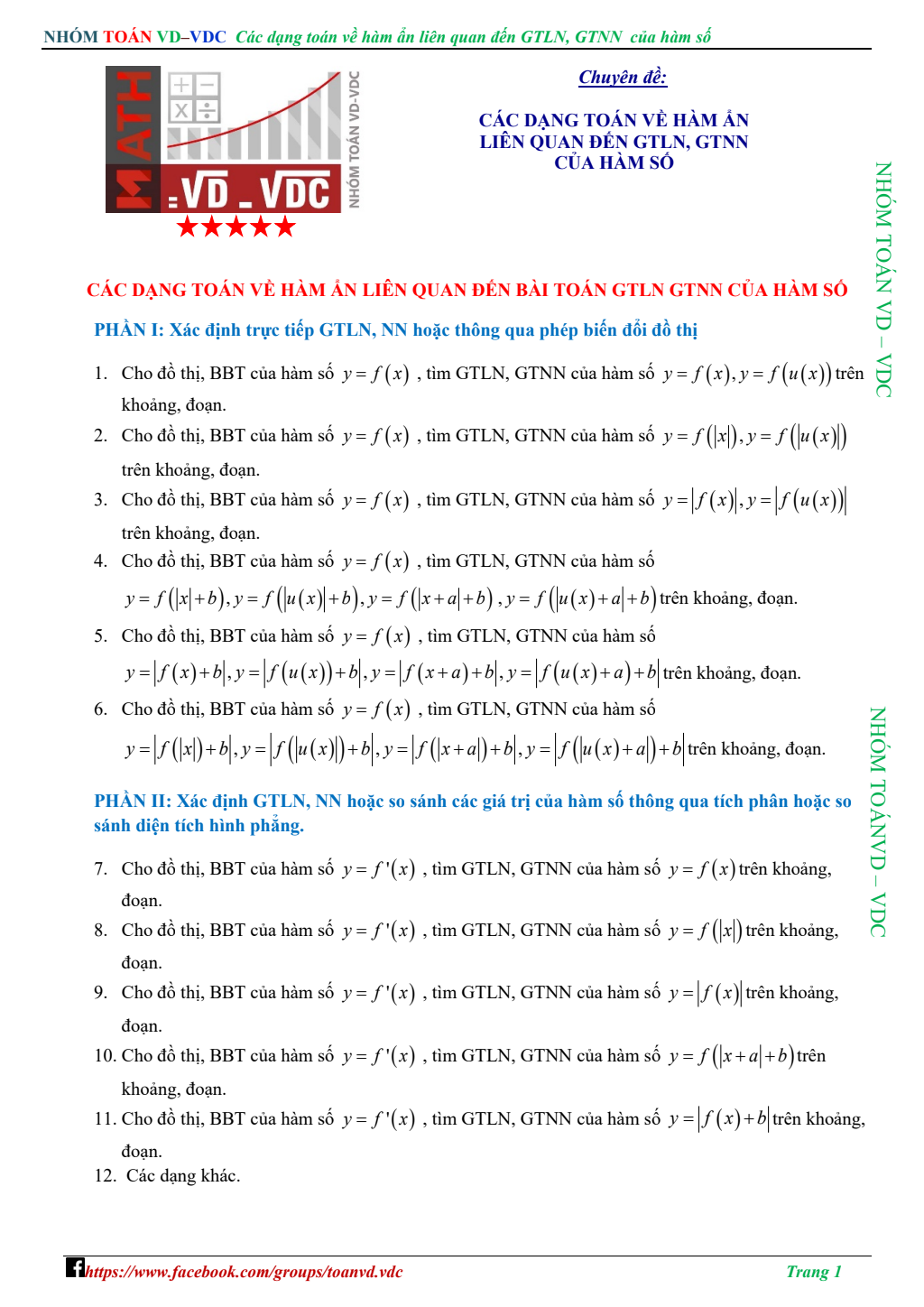 Các dạng toán về hàm ẩn liên quan đến GTLN – GTNN của hàm số