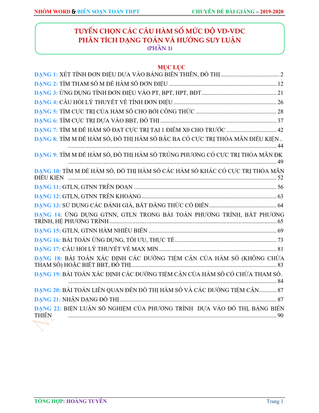 Trắc nghiệm VD – VDC hàm số – Đặng Việt Đông