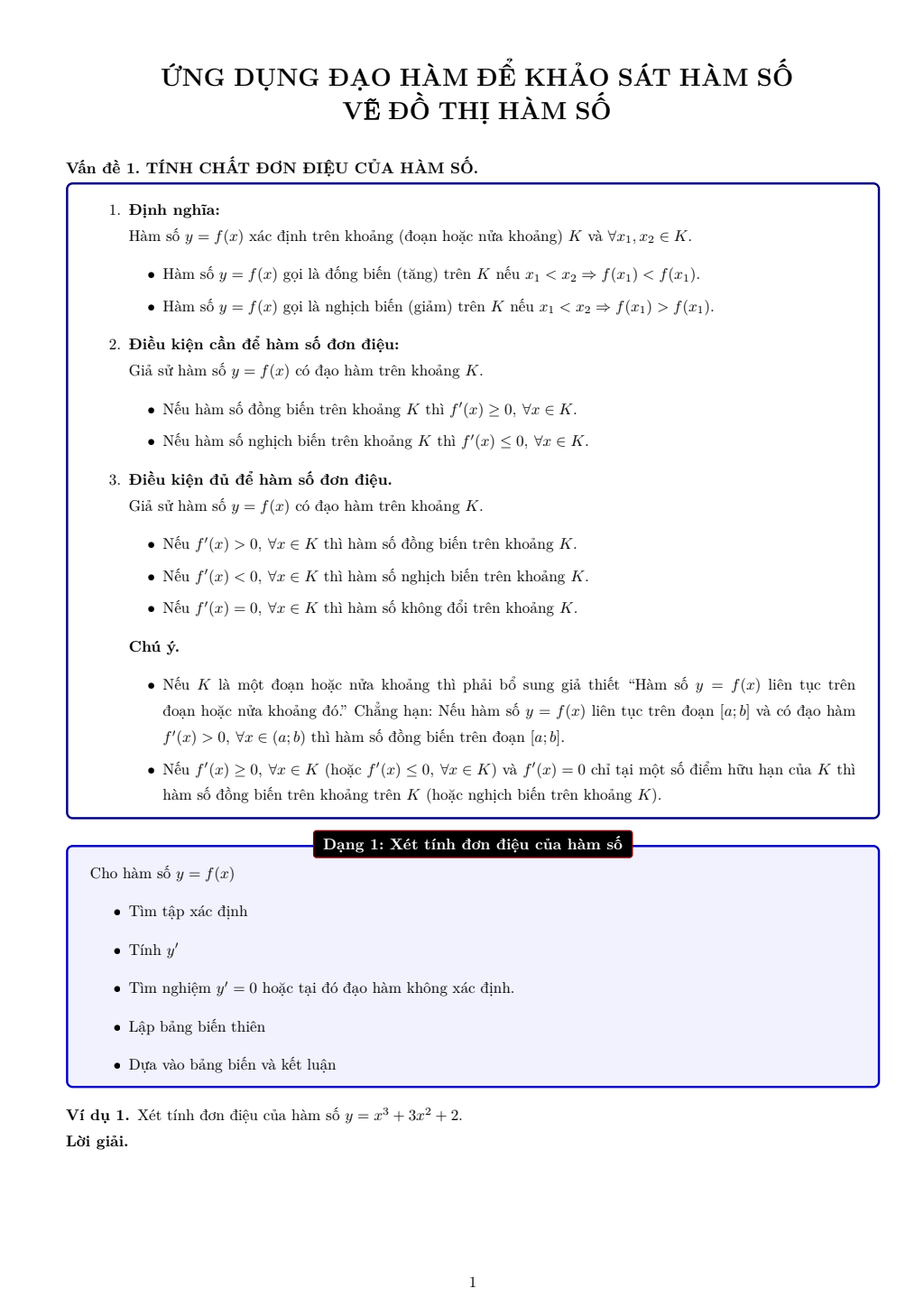 Ứng dụng đạo hàm để khảo sát và vẽ đồ thị hàm số