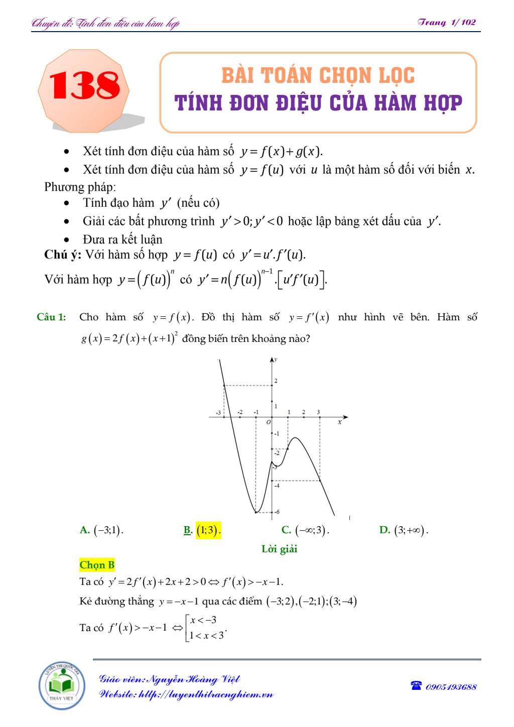 138 bài toán chọn lọc tính đơn điệu của hàm hợp – Nguyễn Hoàng Việt