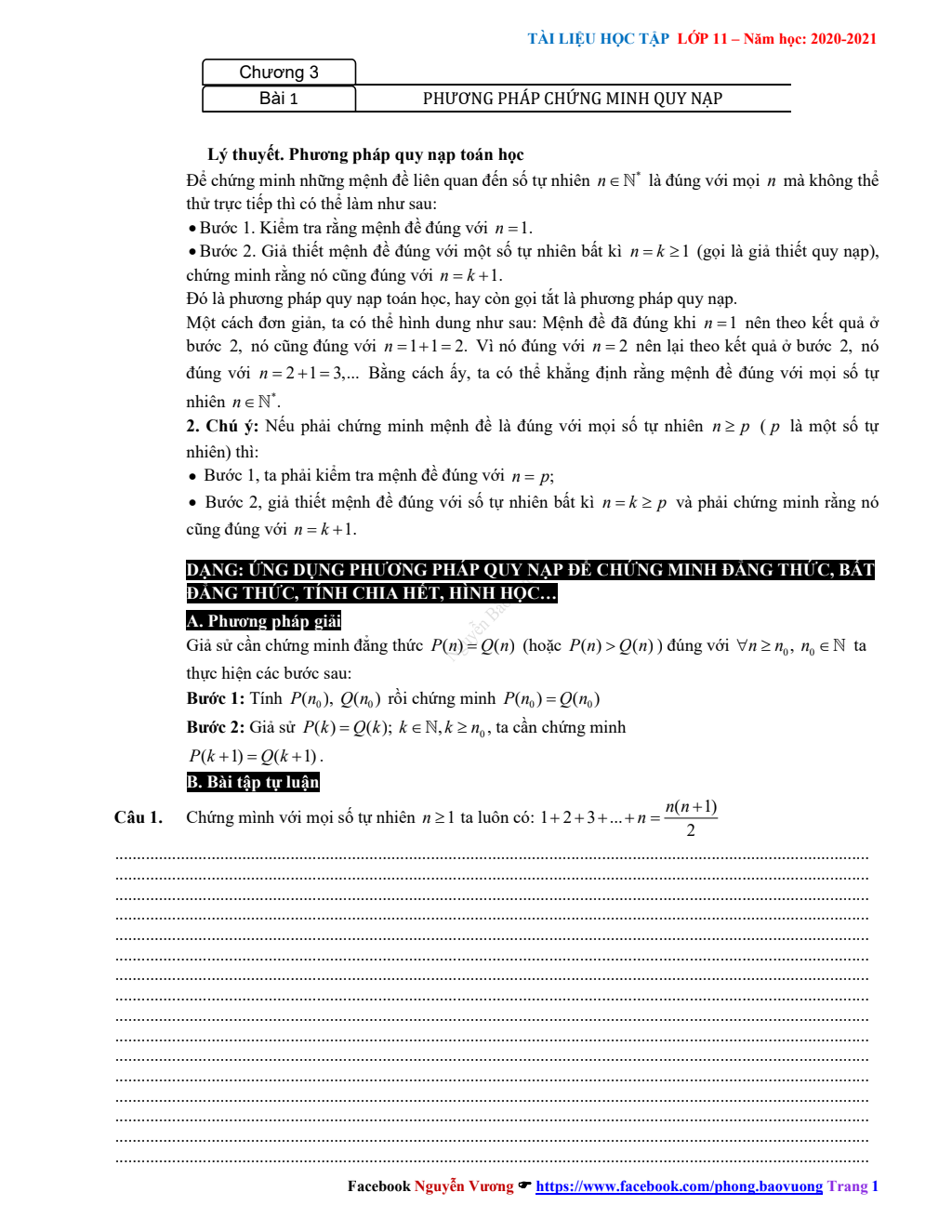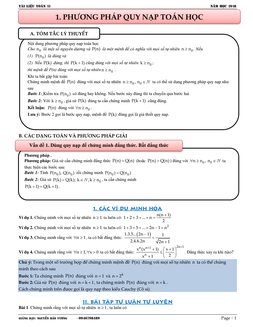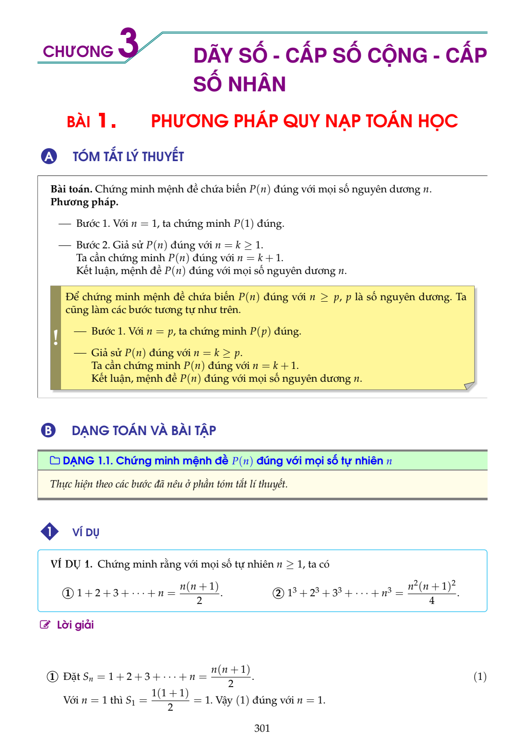 Bài tập phương pháp quy nạp toán học, dãy số, cấp số cộng và cấp số nhân