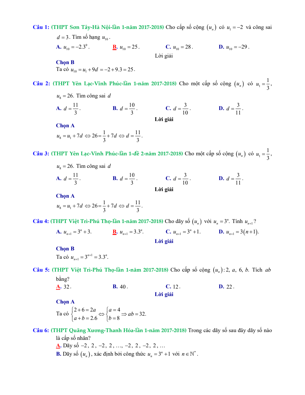 Trắc nghiệm dãy số, cấp số cộng và cấp số nhân trong các đề thi thử Toán 2018