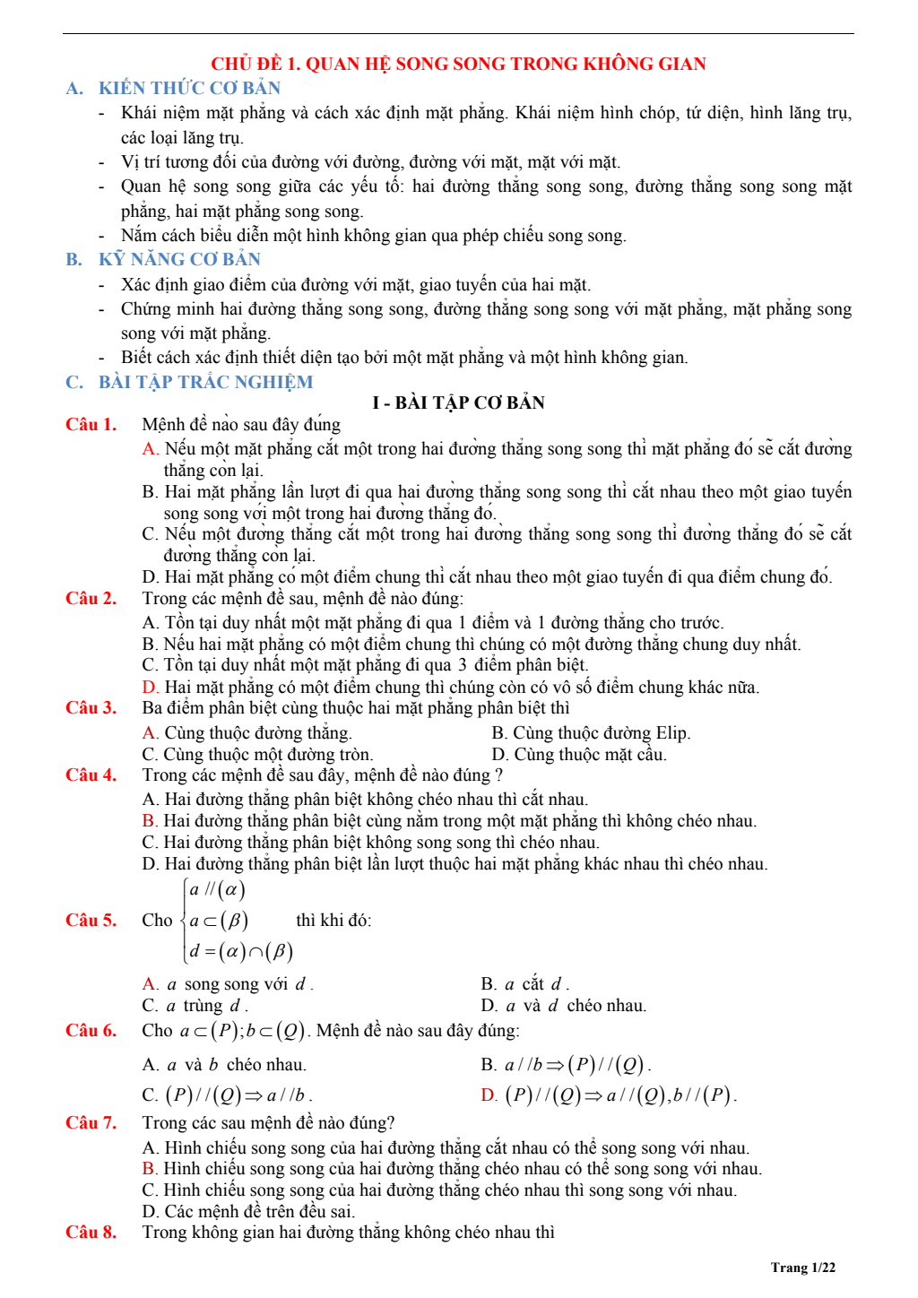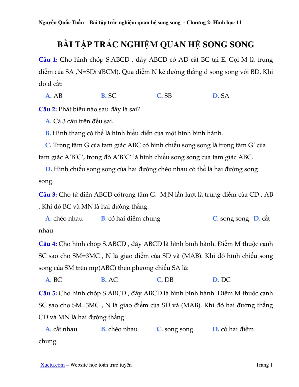 121 câu trắc nghiệm quan hệ song song – Nguyễn Quốc Tuấn