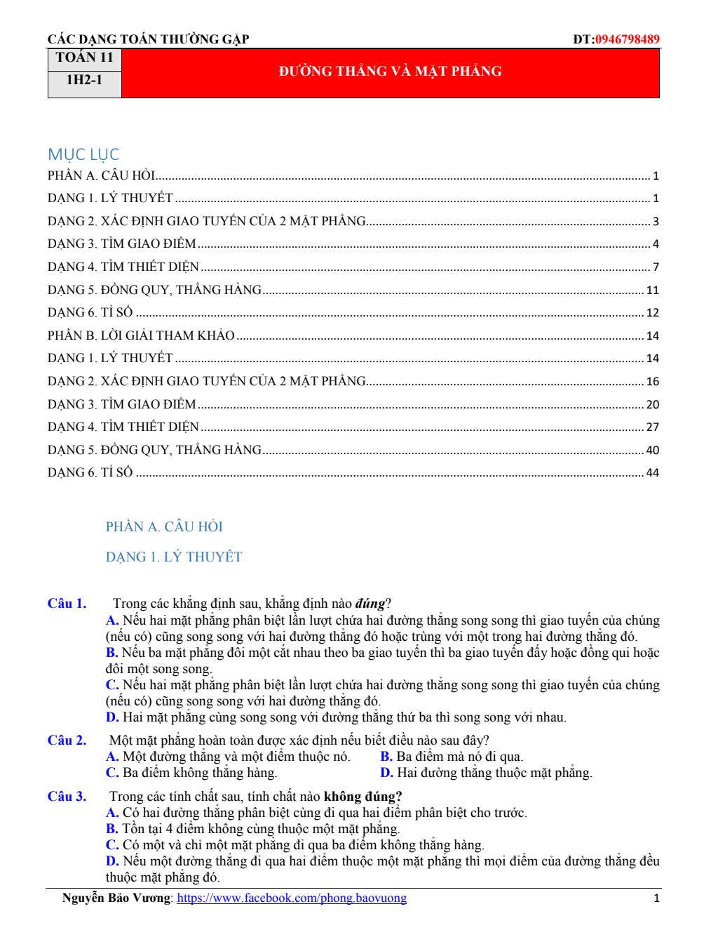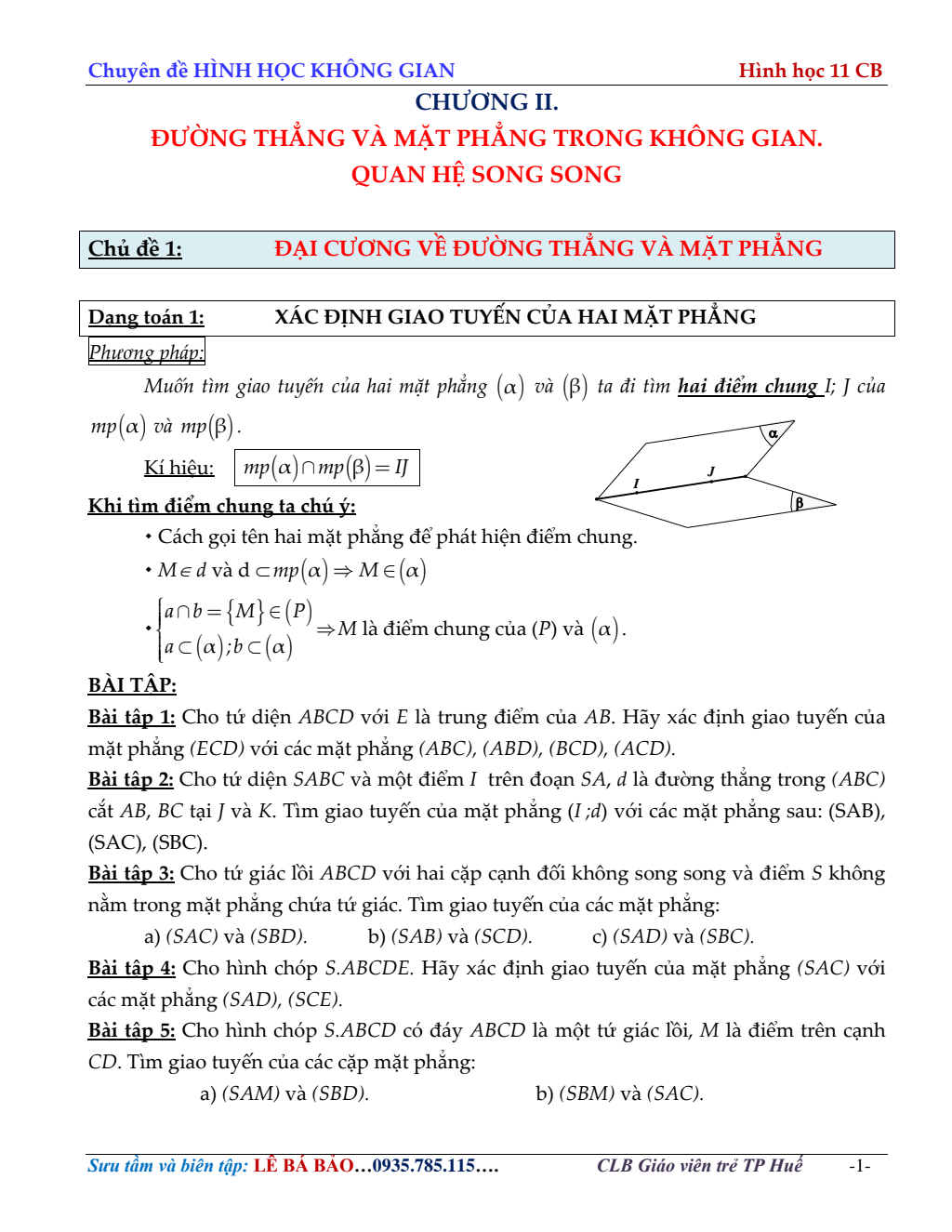 Đường thẳng và mặt phẳng trong không gian, quan hệ song song – Lư Sĩ Pháp