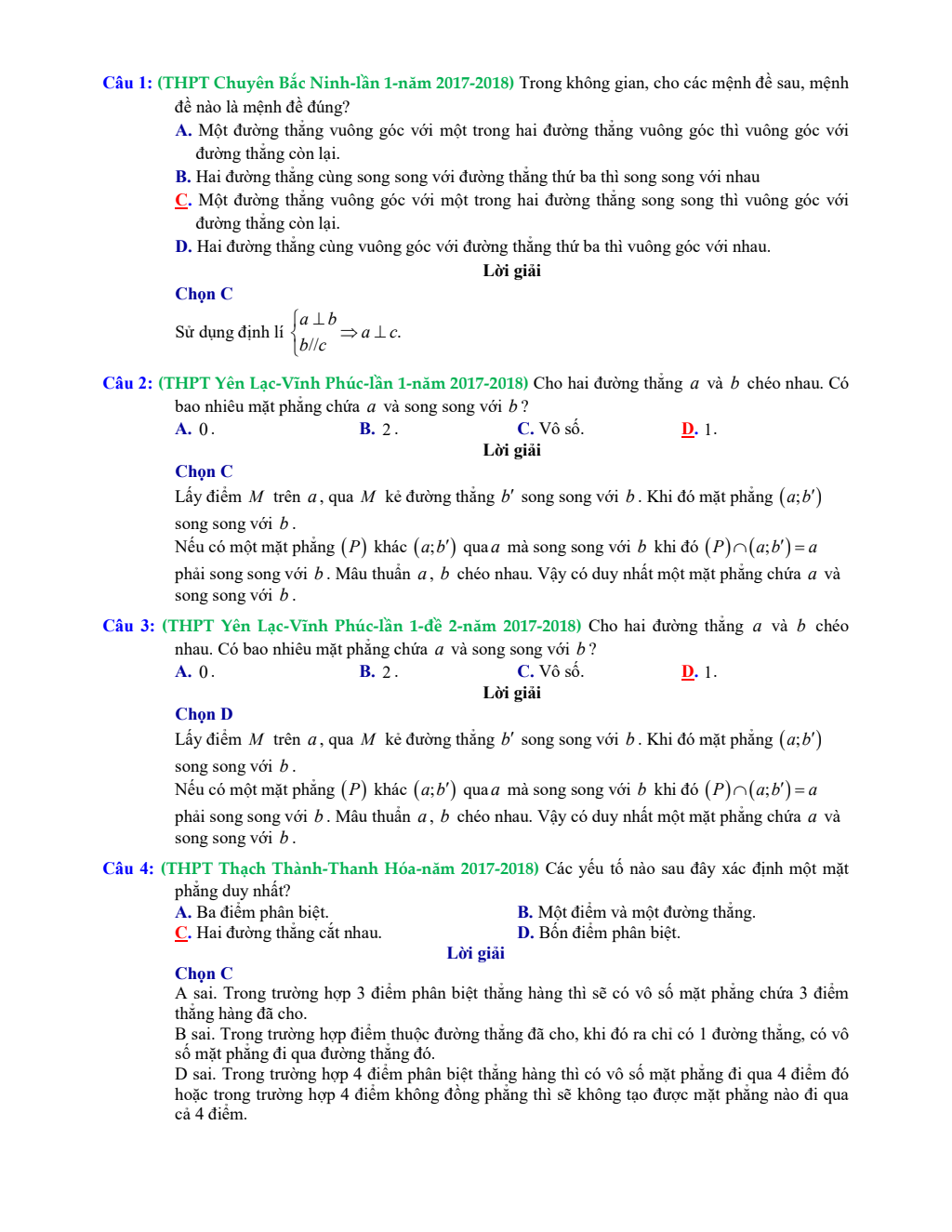 Trắc nghiệm quan hệ song song trong các đề thi thử Toán 2018