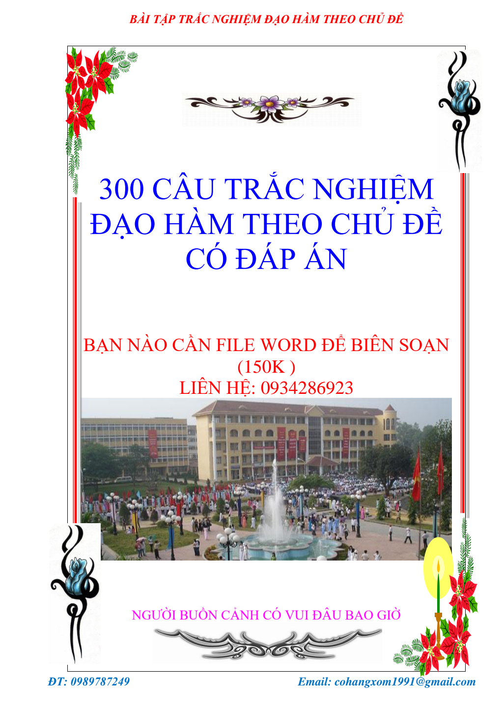 300 câu trắc nghiệm đạo hàm theo chủ đề có đáp án – Phạm Văn Huy Mới