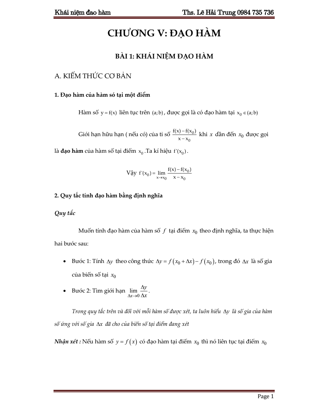 Chuyên đề đạo hàm – Lê Hải Trung Mới