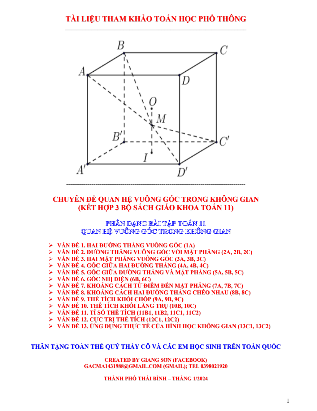 Phân dạng bài tập Toán 11 quan hệ vuông góc trong không gian