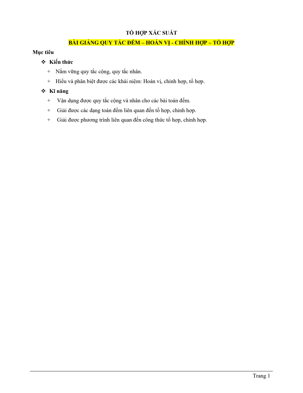 Bài giảng quy tắc đếm, hoán vị, chỉnh hợp và tổ hợp