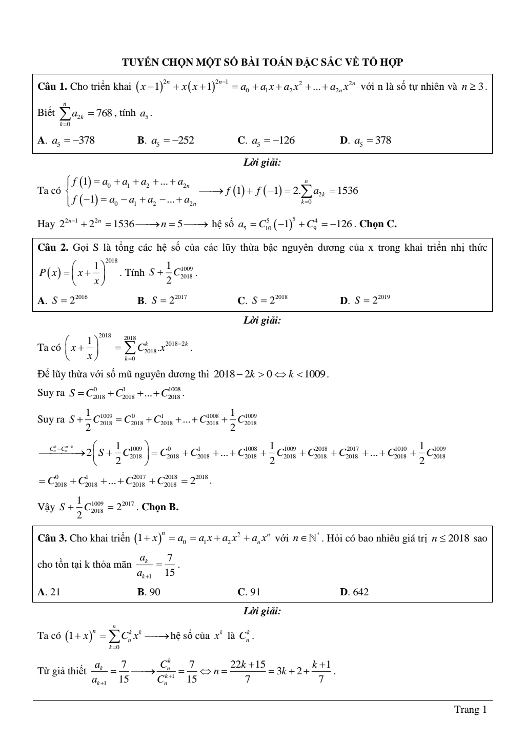 Tuyển chọn một số bài toán đặc sắc về tổ hợp