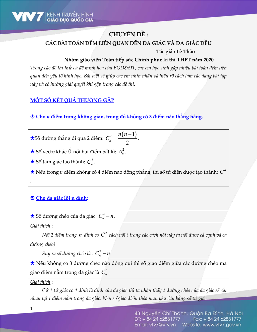 Các bài toán đếm liên quan đến đa giác và đa giác đều – Lê Thảo New