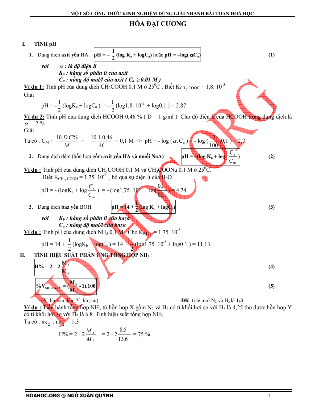 MỘT SỐ CÔNG THỨC KINH NGHIỆM DÙNG GIẢI NHANH BÀI TOÁN HOÁ HỌC.pdf Mới