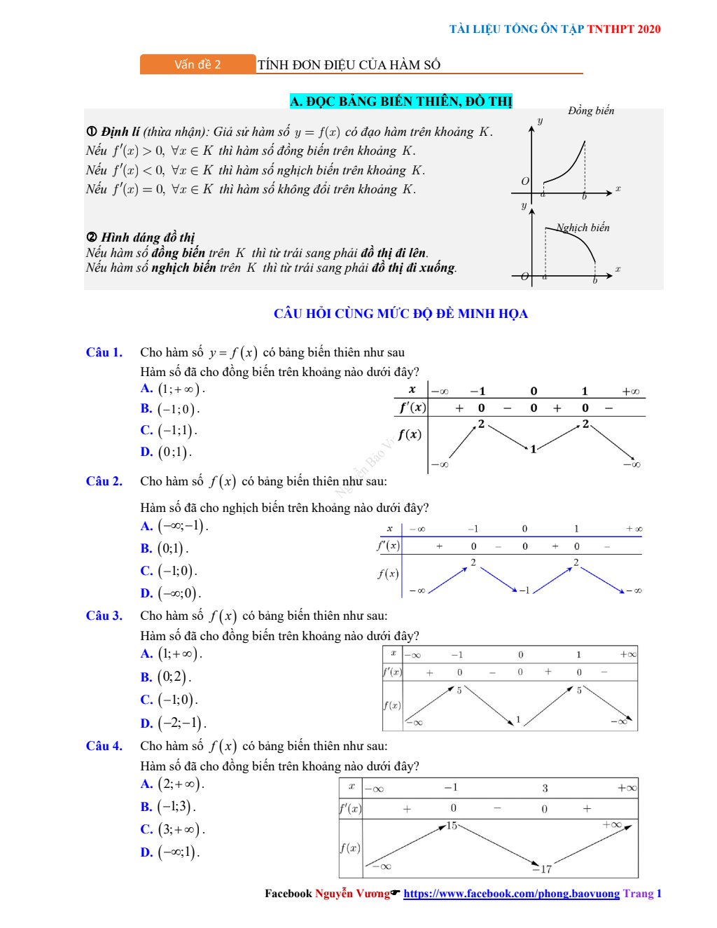 Tài liệu Tổng ôn tập TN THPT 2020 môn Toán - Tính đơn điệu của hàm số hỗ trợ sinh viên trong việc phát triển tư duy phản biện và khả năng giải quyết vấn đề
