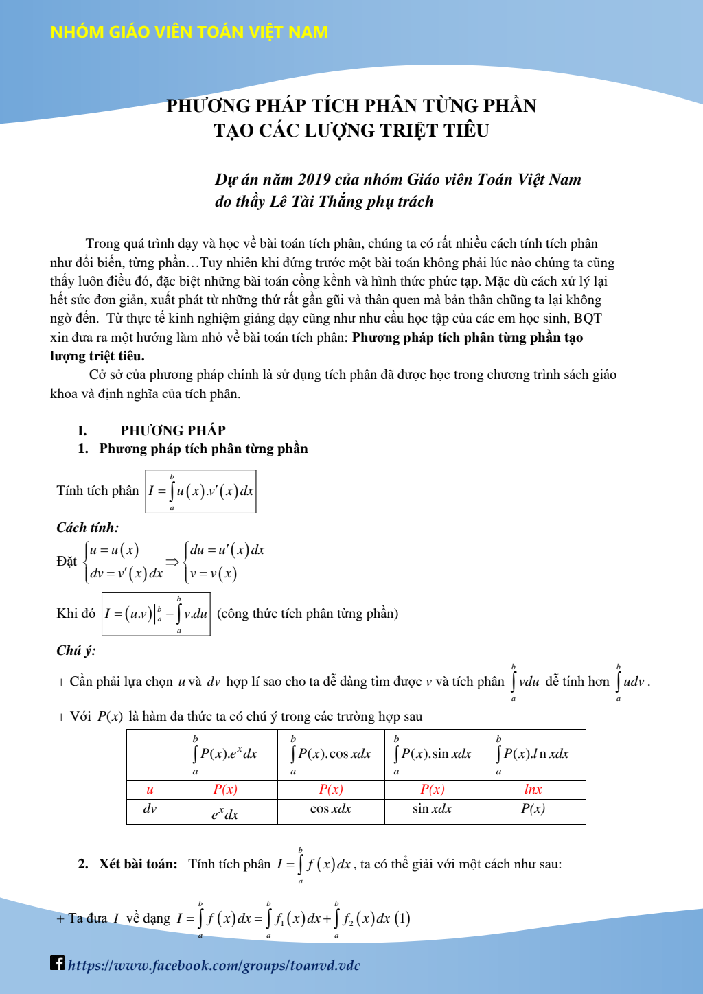 Nội dung trong Tài liệu Phương pháp tích phân từng phần tạo các lượng triệt tiêu được trình bày một cách sinh động, giúp học sinh dễ dàng nhớ và áp dụng kiến thức