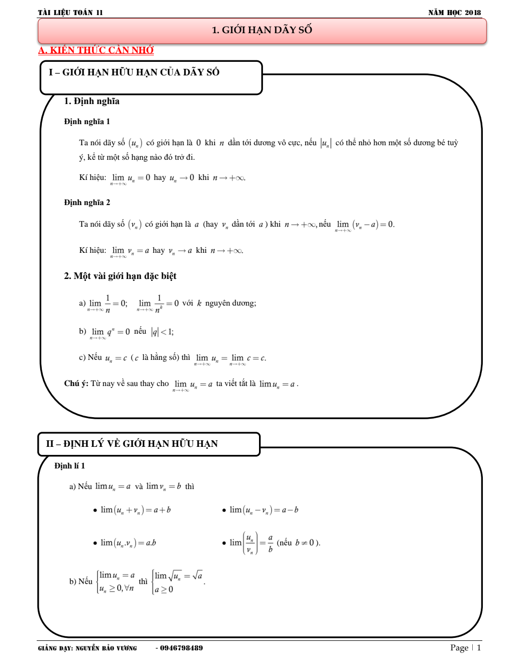 Các dạng toán và bài tập giới hạn có lời giải chi tiết – Nguyễn Bảo Vương Mới