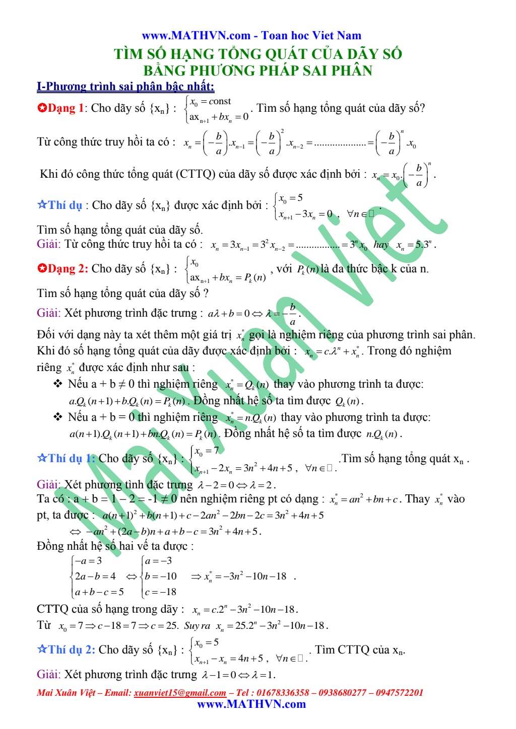 Tìm số hạng tổng quát của dãy số bằng phương pháp sai phân.pdf Mới
